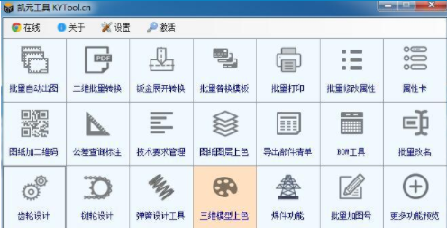凯元工具(KYTool)是一款SolidWorks插件,主要包括批量自动出图、批量处理属性、钣金批量导CAD、导出各种BOM、设计齿轮链轮、标准件库等30多个功能,并且每年都以10个新功能的速度升级完善,使用凯元插件可以有效提高SolidWorks设计师的工作效率。